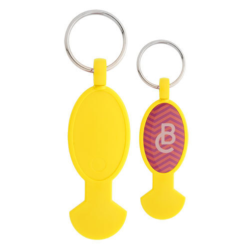 Plastový přívěšek na klíče s koncovkou do nákupních vozíků. Ideální pro epoxy potisk.
