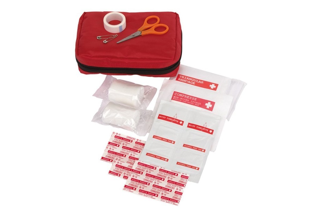 First Aid kit "Guardian Pouch" with plasters, 2 bandages, cloth, pads, plaster strips, safety pins, hygienic moist cloths, small pair of scissors, packed in zip bag