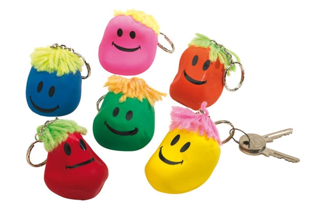 Key ring "Funny Faces", 6 colours assorted, price per piece
