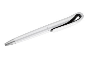 Push type ball pen with recycled paper barrel and ABS fittings. Blue ink.