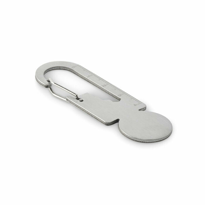 Trolley token with key ring in recycled stainless steel with multi-function tool including bottle opener, ruler and hex driver wrench (M1/M2/M3/M4).