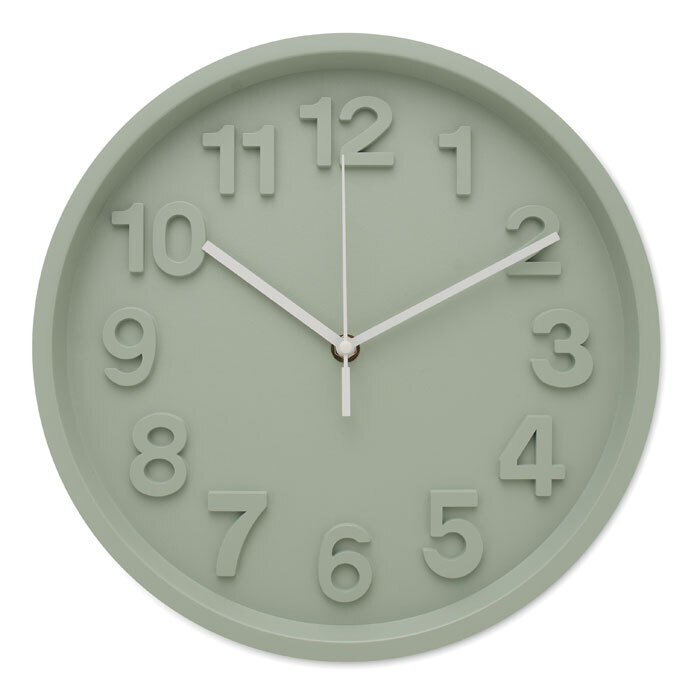 Wall clock in PP with aluminium hands and silent movement. Requires 1 AA battery (not included).