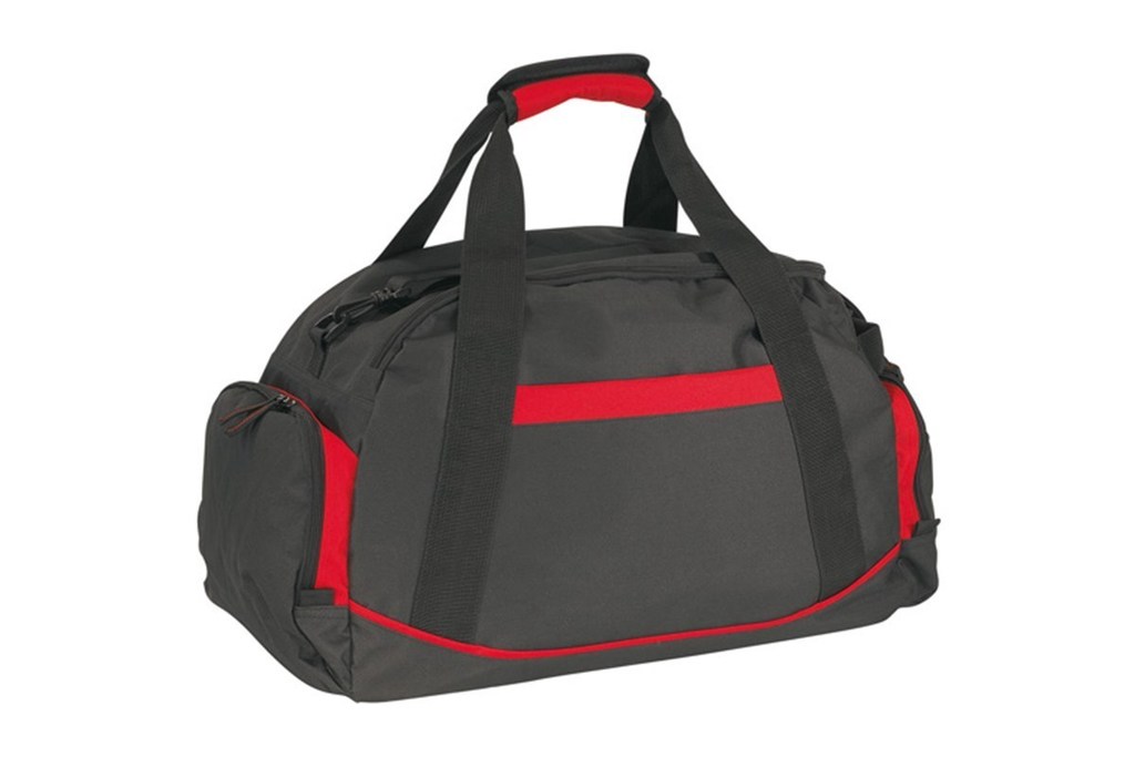 Sportsbag "Dome" with large shoe section, main section and 2 side pockets with zip, slip-in pocket on the back side, water-resistant bottom, includes an adjustable and removable shoulder strap with a shoulder pad