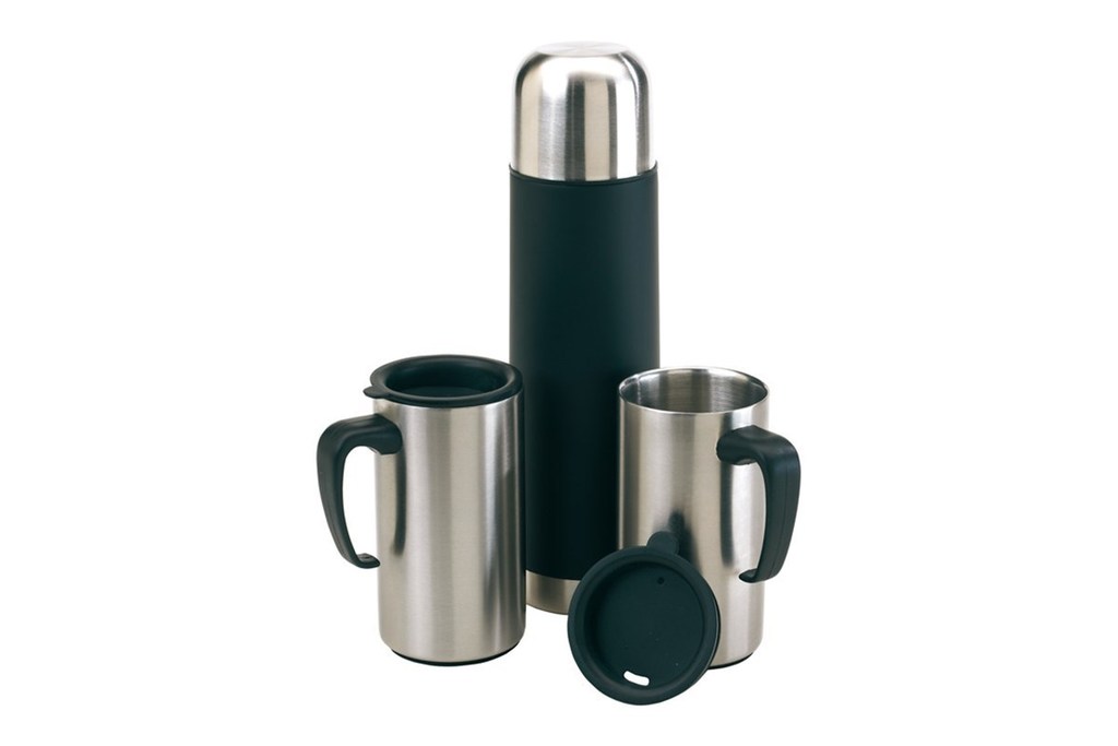 Stainless steel , consists of a double-walled flask (500ml) and 2 vacuum cups (200ml