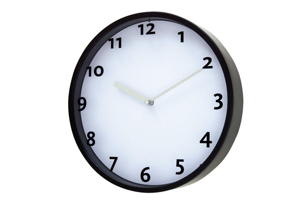 Wall clock "Push" with analogue display, easy to take the clock apart which enables easy printing on the dial